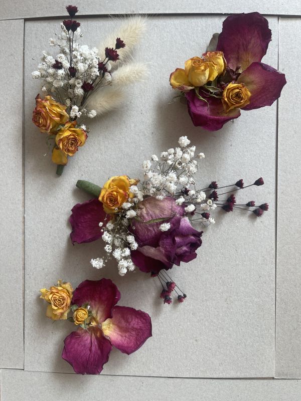 - boutonnières florales pour le marié et ses témoins